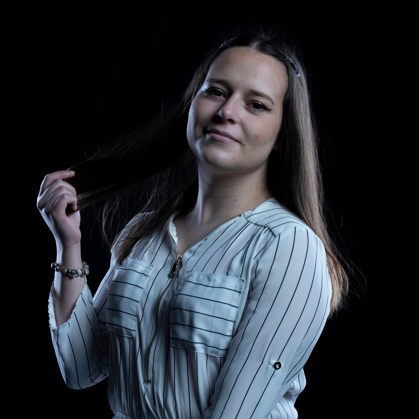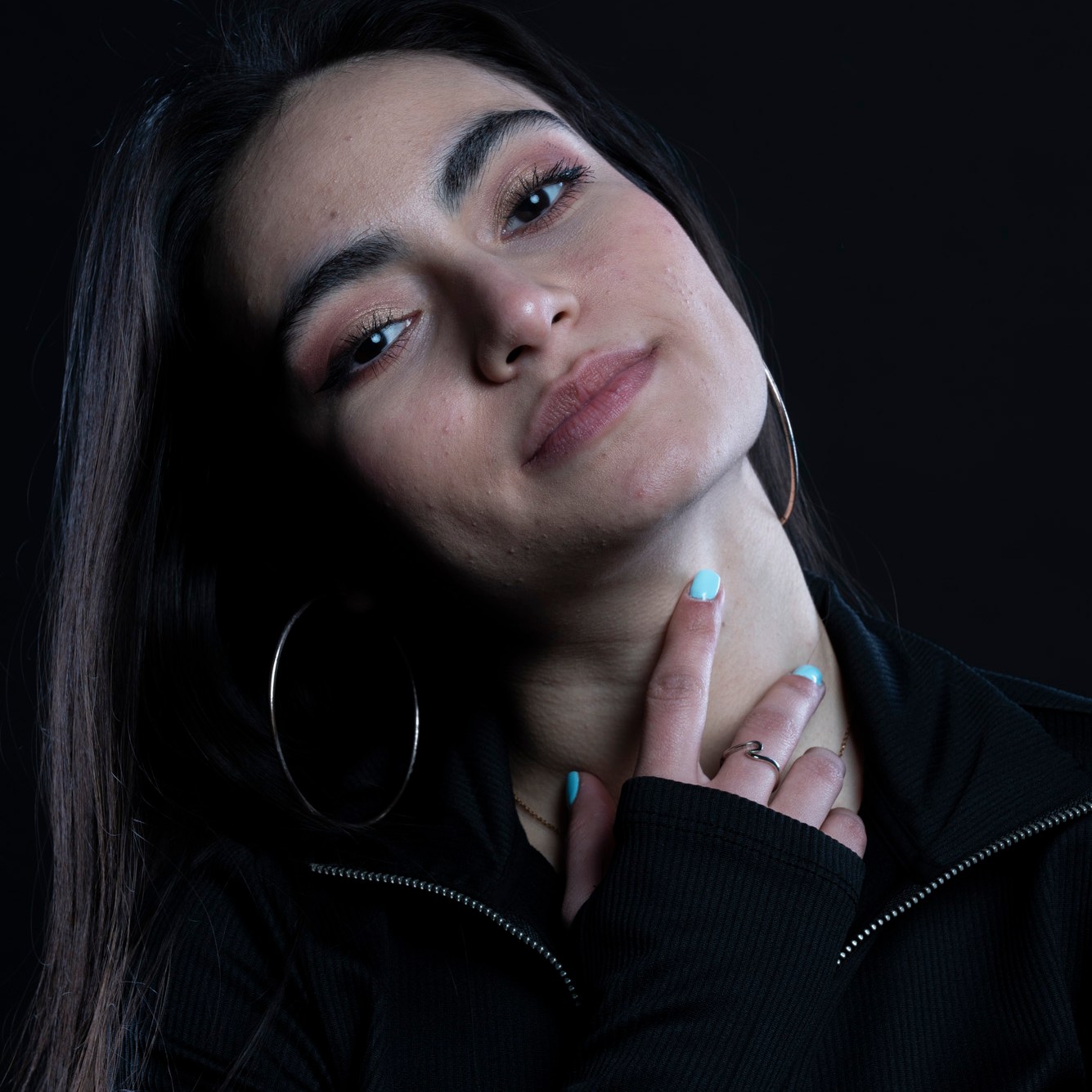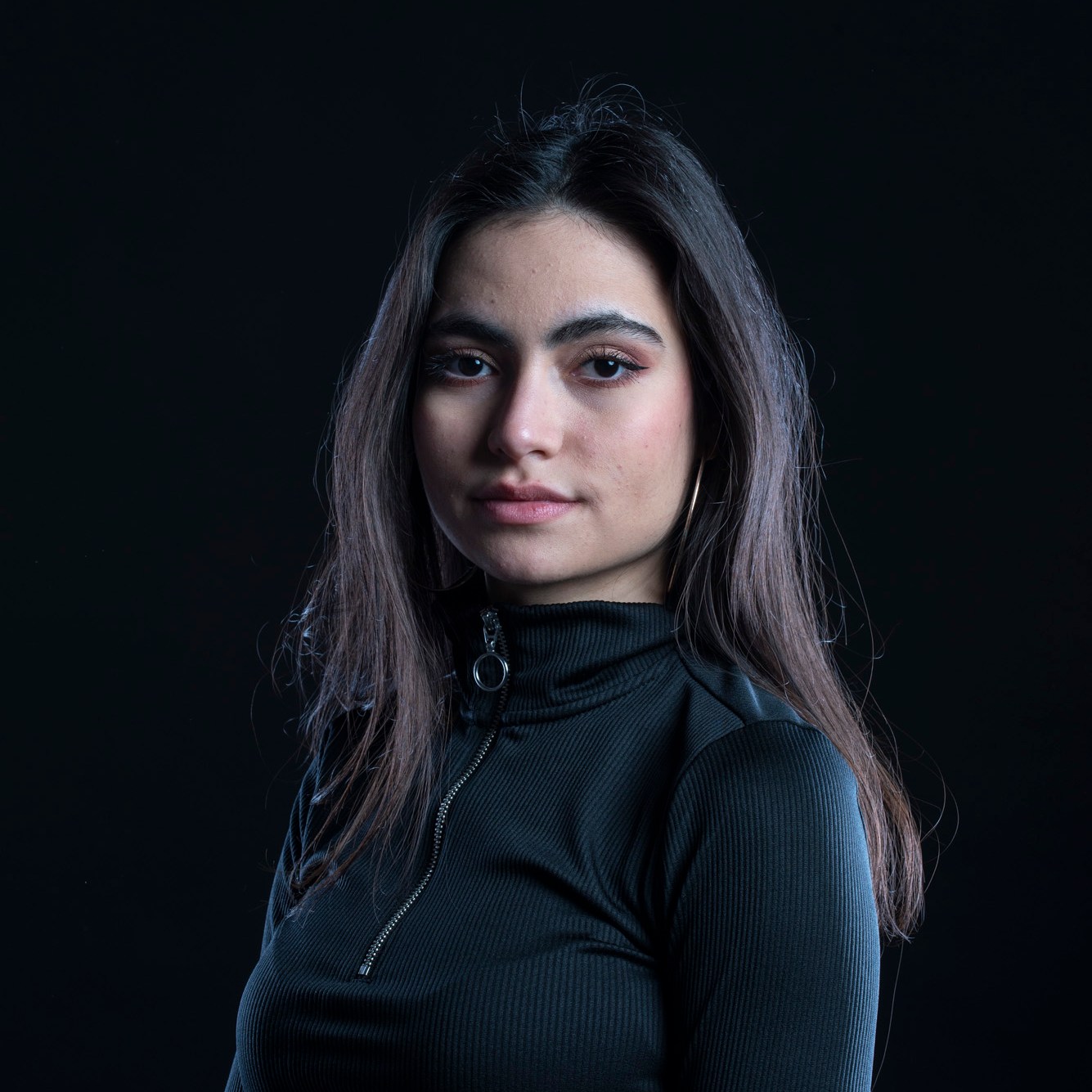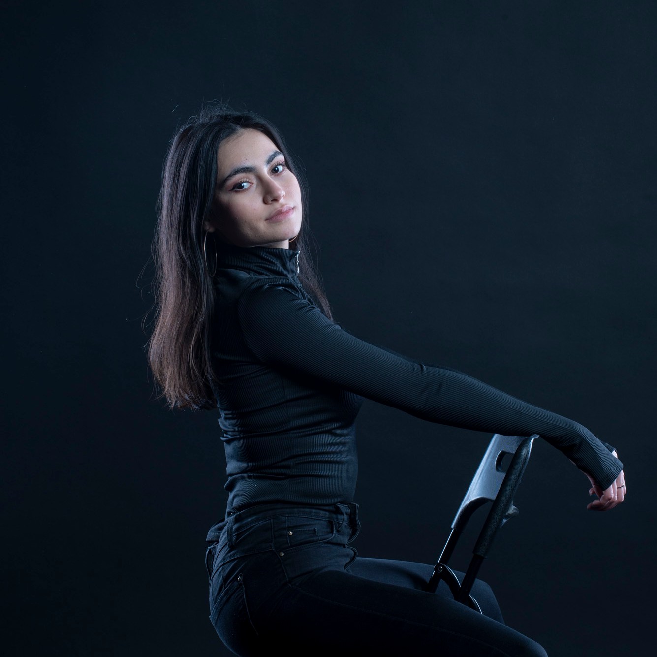 Studio photographs with a really beautiful, photogenic and nice model. With style. She has shown up with all black clothes, which basically got to the idea of an all black photograph, which I still think is one of my most successful and my favorite photo ever taken. Huge thanks to her for most amazing photos and amazing mood. She is really fun to work with, always in great mood to make yours the same. Amazing photo-shoot that I remember like yesterday (year taken: 2021).