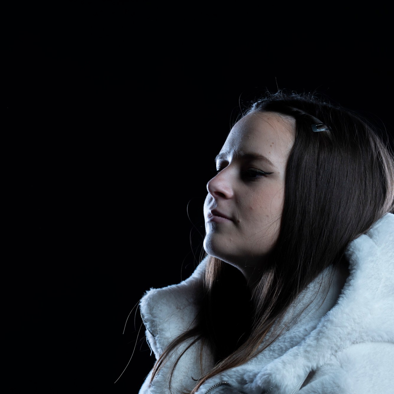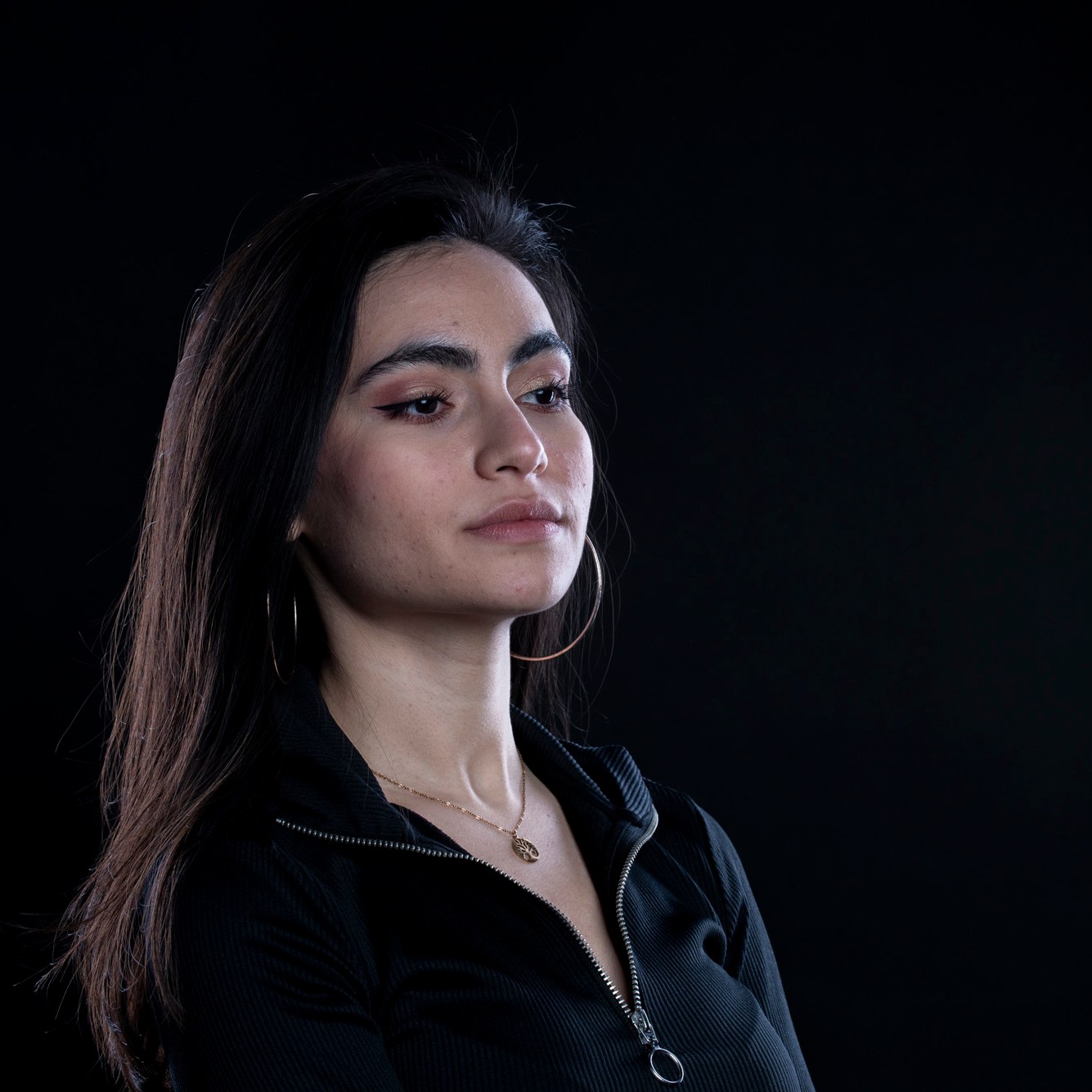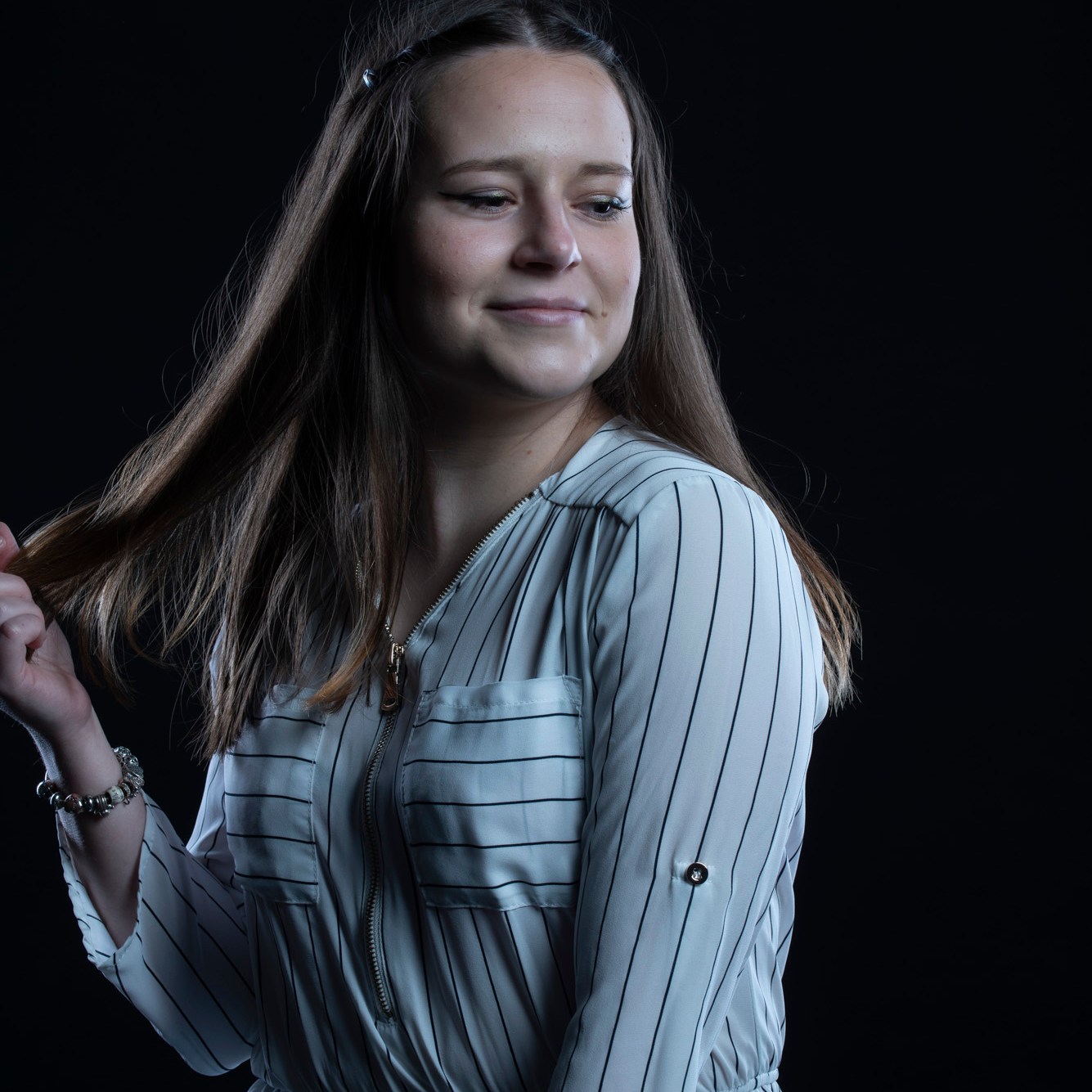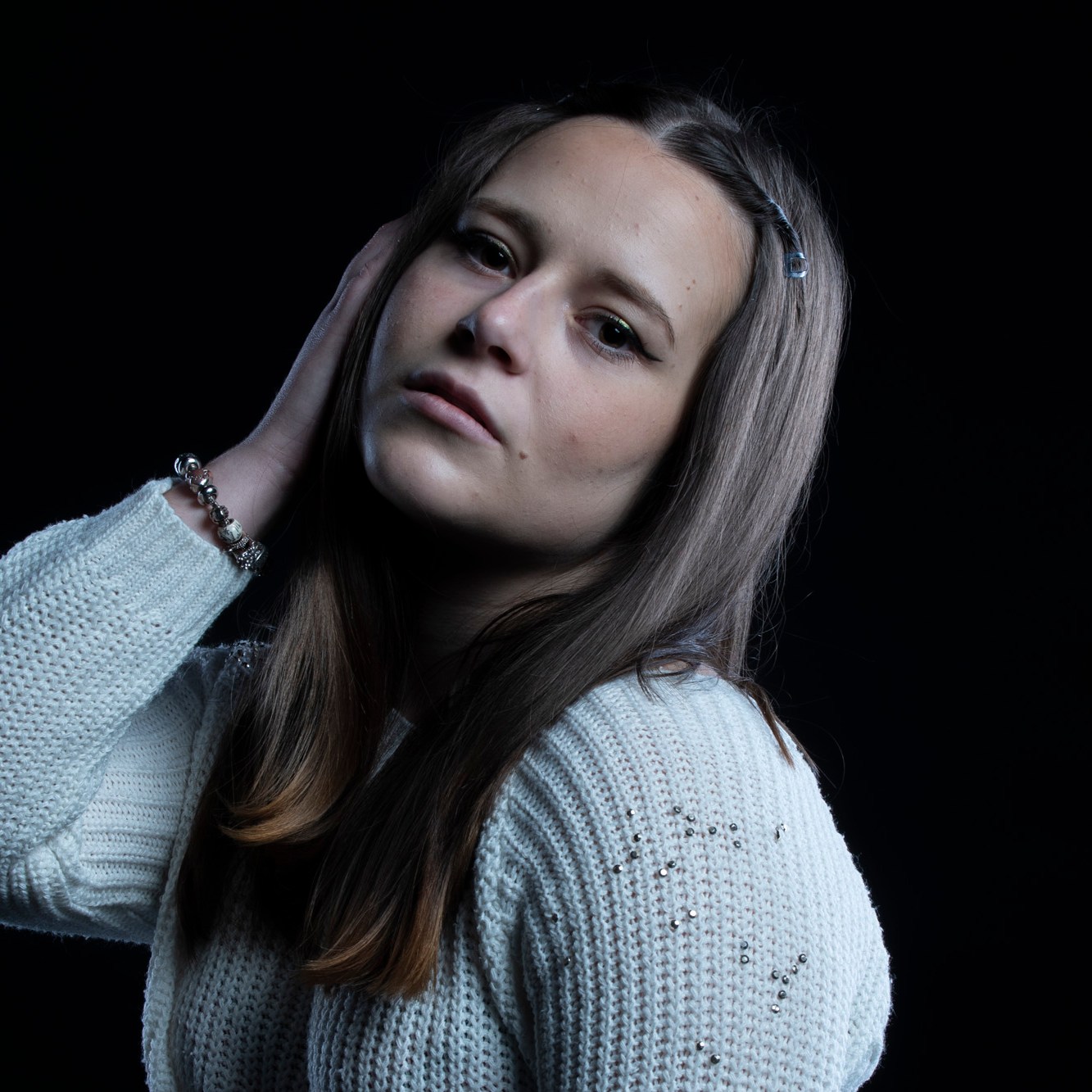 Studio photographs with a really beautiful, photogenic and nice model. With style. She has shown up with all black clothes, which basically got to the idea of an all black photograph, which I still think is one of my most successful and my favorite photo ever taken. Huge thanks to her for most amazing photos and amazing mood. She is really fun to work with, always in great mood to make yours the same. Amazing photo-shoot that I remember like yesterday (year taken: 2021).