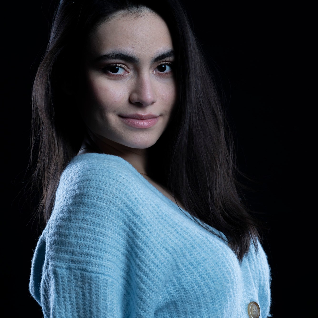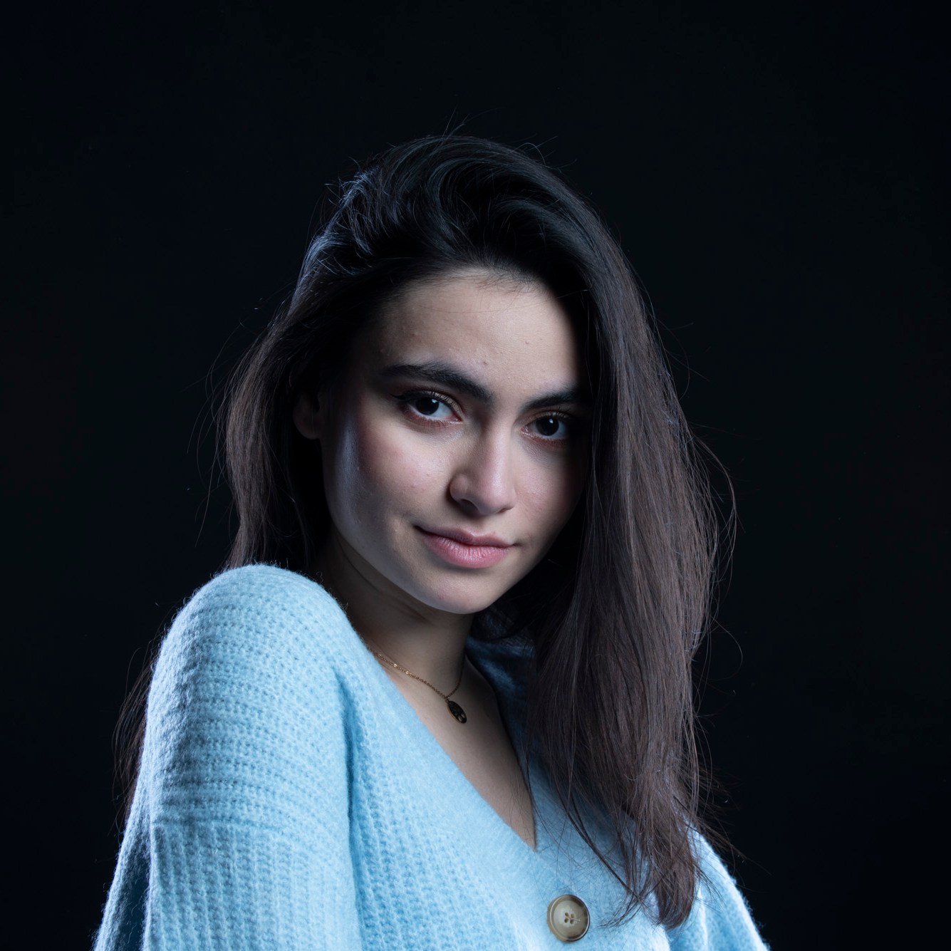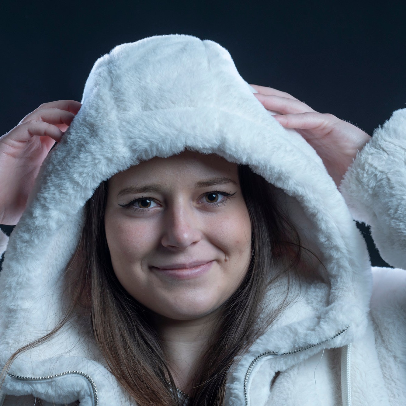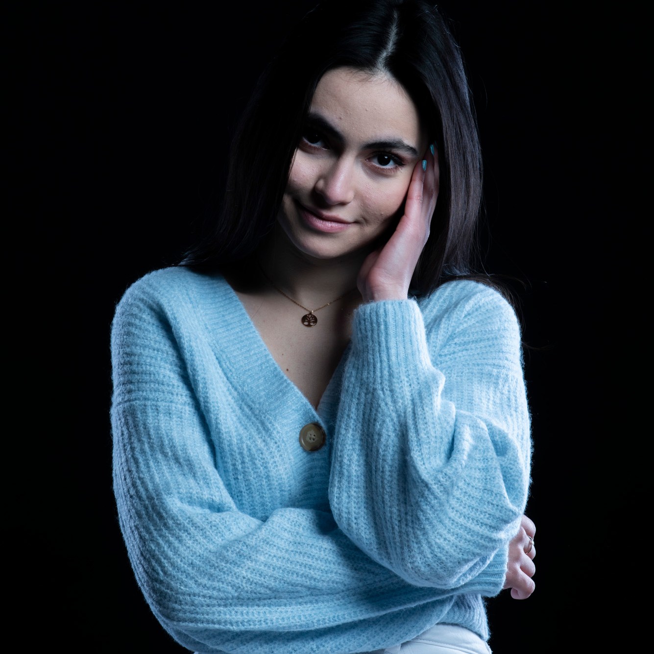 Studio photographs with a really beautiful, photogenic and nice model. With style. She has shown up with all black clothes, which basically got to the idea of an all black photograph, which I still think is one of my most successful and my favorite photo ever taken. Huge thanks to her for most amazing photos and amazing mood. She is really fun to work with, always in great mood to make yours the same. Amazing photo-shoot that I remember like yesterday (year taken: 2021).