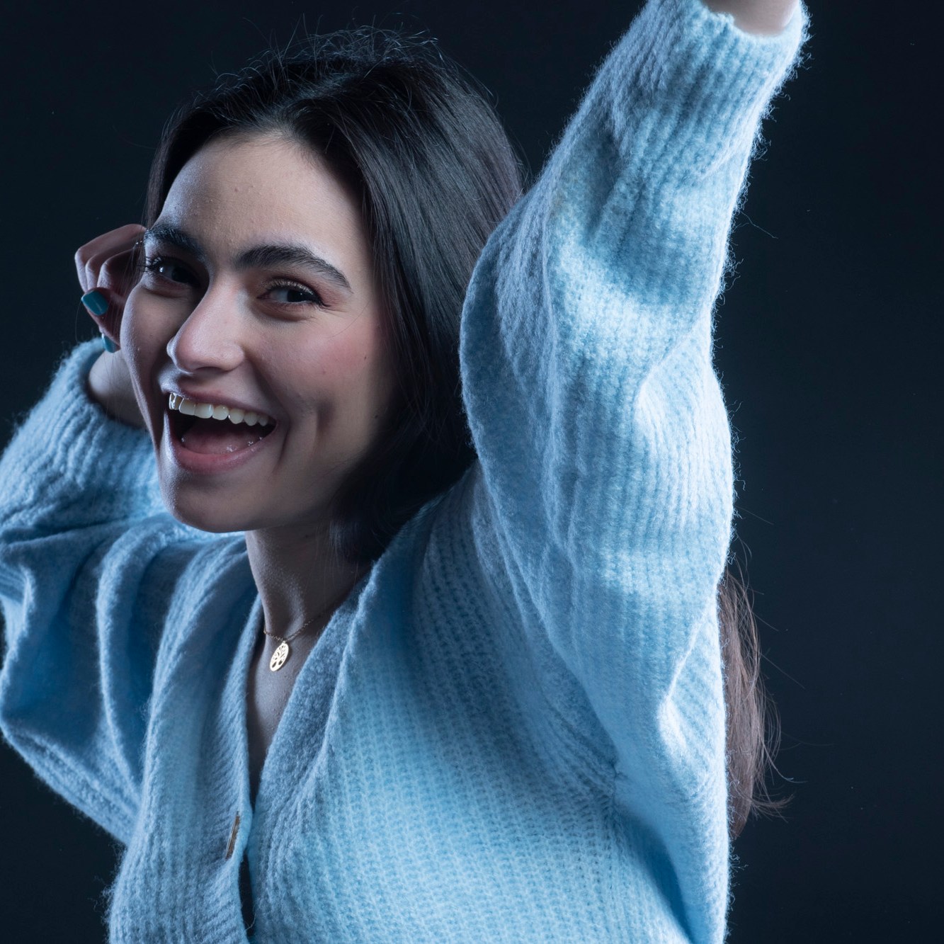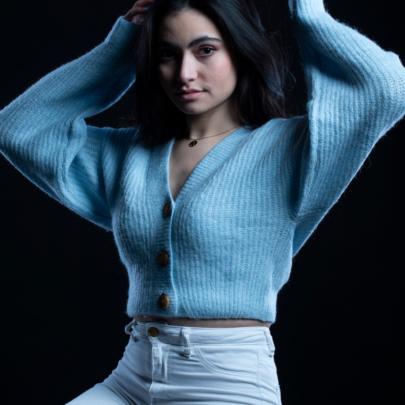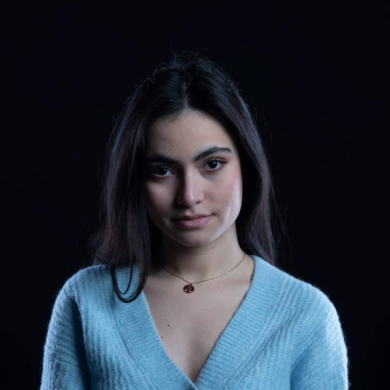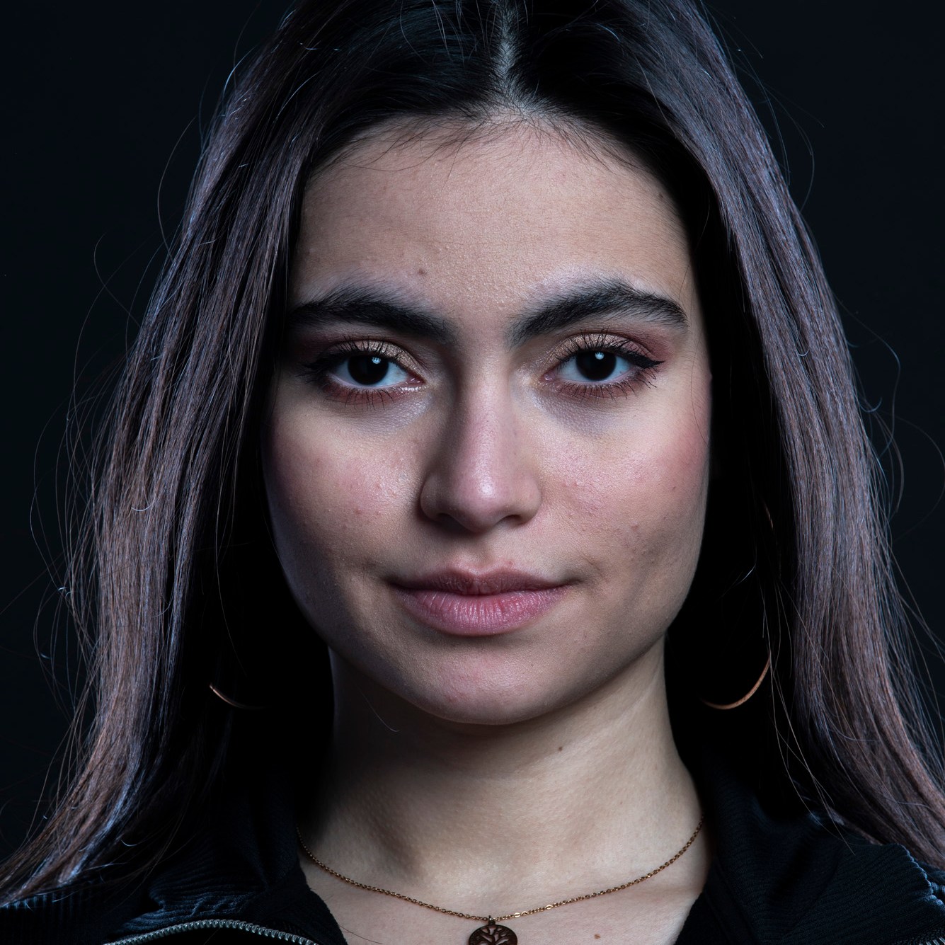 Studio photographs with a really beautiful, photogenic and nice model. With style. She has shown up with all black clothes, which basically got to the idea of an all black photograph, which I still think is one of my most successful and my favorite photo ever taken. Huge thanks to her for most amazing photos and amazing mood. She is really fun to work with, always in great mood to make yours the same. Amazing photo-shoot that I remember like yesterday (year taken: 2021).